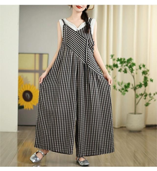 夏 サロペット オーバーオール オールインワン レディース つなぎ チェック ストライプ ロンパース 体型カバー 大きいサイズ ボトムス パンツ 作業服 キャミ カジュアル サルエル ジャンパースカー