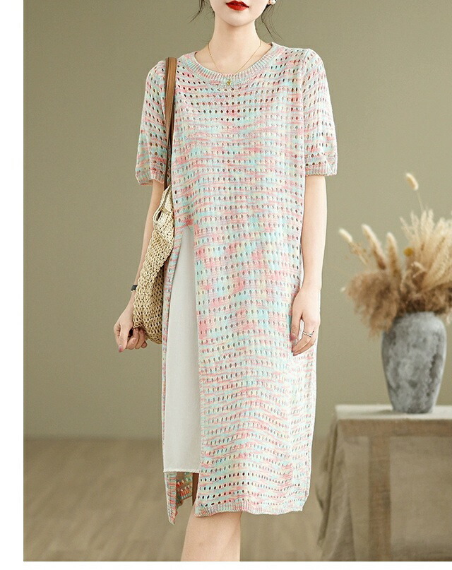 ニット チュニック 半袖 ワンピース レディースファッション 割引