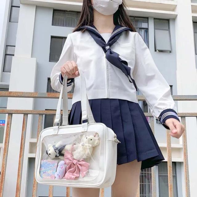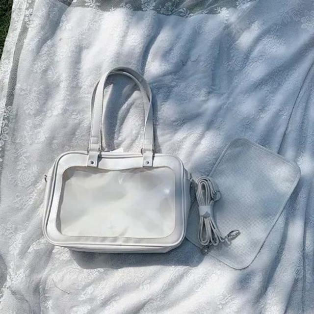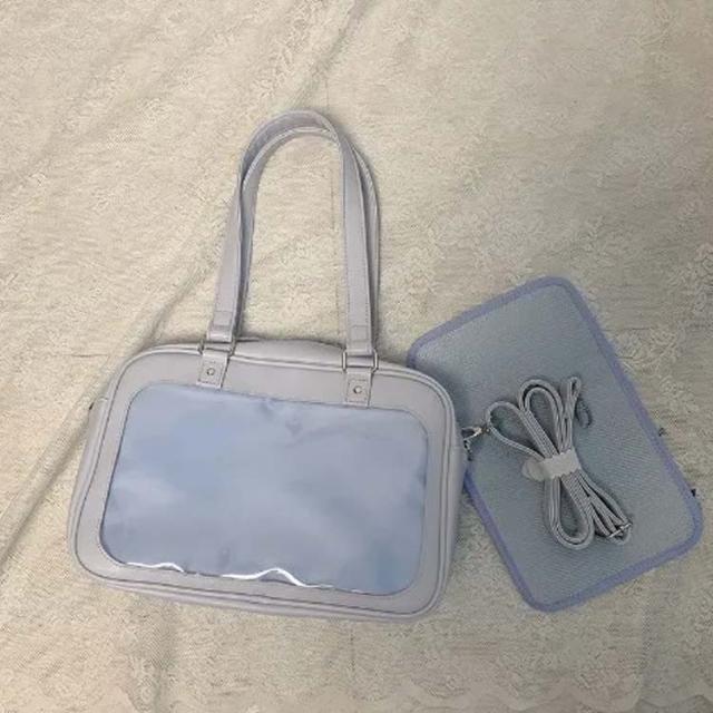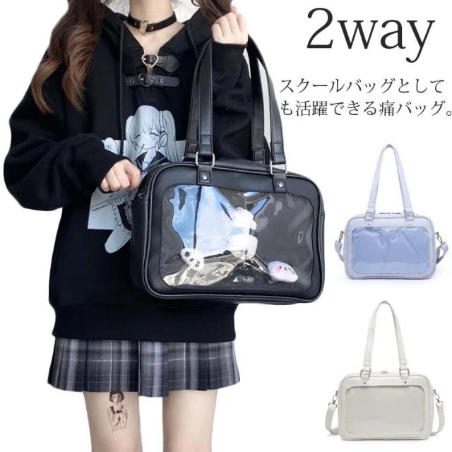 留めるのに便利なメッシュボード付き 痛バッグ 缶バ 痛バ 推し活バッグ スクールバッグ 大きな透明ポケット トートバッグ 通学 学生 ショルダーバッグ 斜め掛け A4 ポケット 学生鞄 子供 ビニール