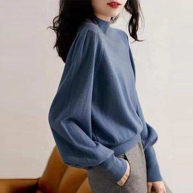 ハイネック 春 ニット ボリューム袖 トップス ニット セーター セーター 豊富な品揃え ブルー キャメル ベージュ ブラック
