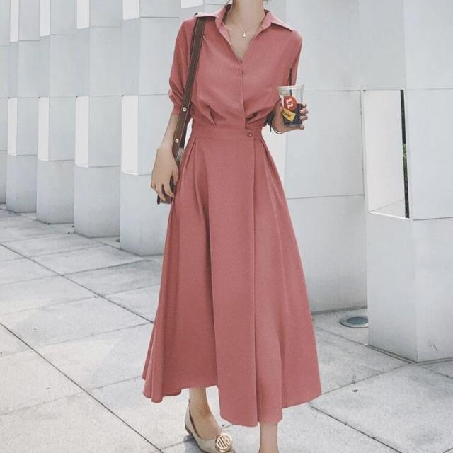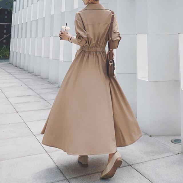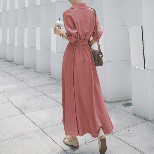 長袖 シャツ レディース 春秋 ロングワンピース マキシワンピース シャツワンピ ボタン 7分袖 ロングシャツ ワンピ ロング マキシ 体型カバー シャツワンピース フレア Aライン 大人 ワンピース