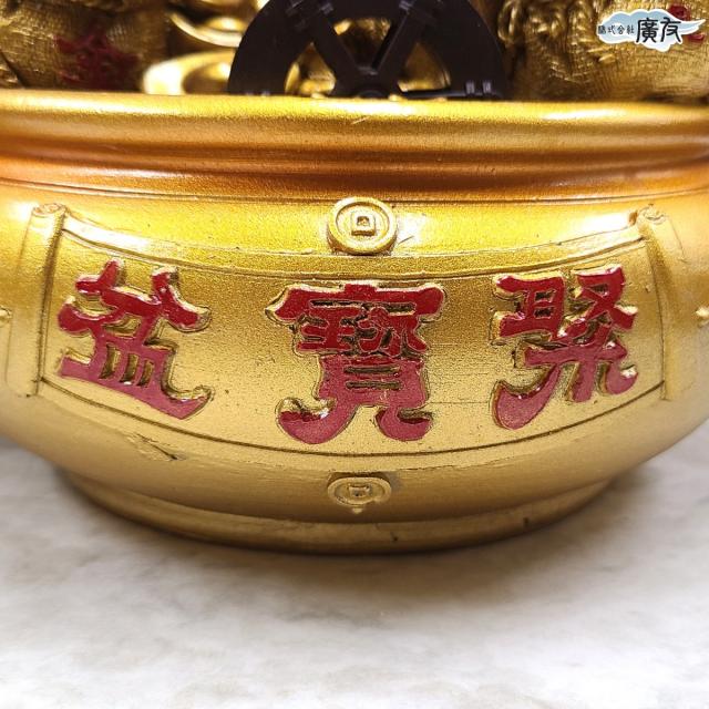 財を表す波の中には「古来からの強い財運を現代に受け継ぐ」縁起のある「風水古銭」と「元宝」がたくさんあしらわれている他、器には、宝の山の意味をもつ「集宝盆」の文字が刻まれています。