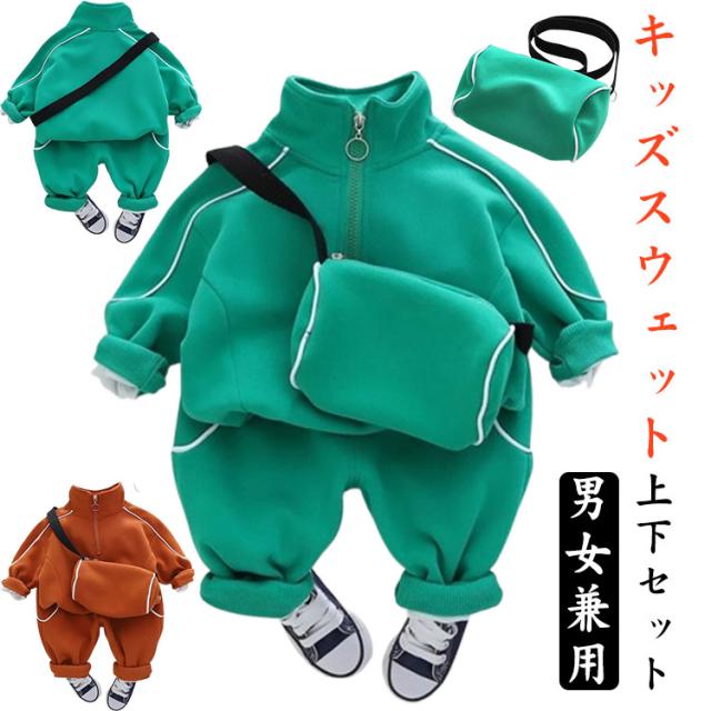 ジャージ ボーイズ パーカー セットアップ 3点セット スウェットパンツ ハーフZIP ベビー 男の子 女の子 春秋 ショルダーバッグ付き 上下セット カジュア 子供服