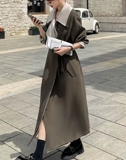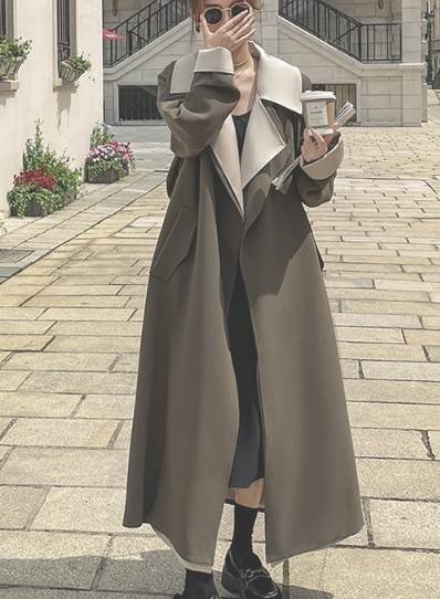 レディース コート ロング 長袖 萌袖 襟付き ワイド ウエストマーク ウエストリボン ポケット バイカラー かわいい 大人可愛い シンプル カジュアル おしゃれ かっこいい ラフ ルーズ クール エレガント 存在感 キュート シック 高級感 無地 春 秋 10代 20代 30代 デート お出かけ イベント 旅行 女子会 休日 高原 ガーデン ショッピング お花見 食べ歩き テーマパーク 遊園地 普段使い 着回し モテ 定番 S M L XL ゆったり オーバーサイズ カーキ