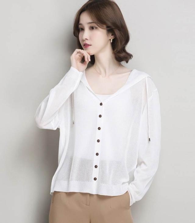 トップス カーディガン ショート丈 袖あり 長袖 襟なし ルーズ フード付き 前開き 透け感 薄手 大人可愛い きれいめ シンプル カジュアル 上品 お洒落 レトロ 大人女子 こなれ感 ラフ とろみ感 抜け感 無地 夏 10代 20代 30代 40代 50代 60代 レディース オフィス OL 通勤 学生 通学 デート お出かけ 休日 普段使い 韓国系 オルチャン コーデ トレンド 流行 M L XL 2XL 3XL 4XL 大きめ ホワイト ブラック ブルー パープル ブラウン ピンク アプリコット