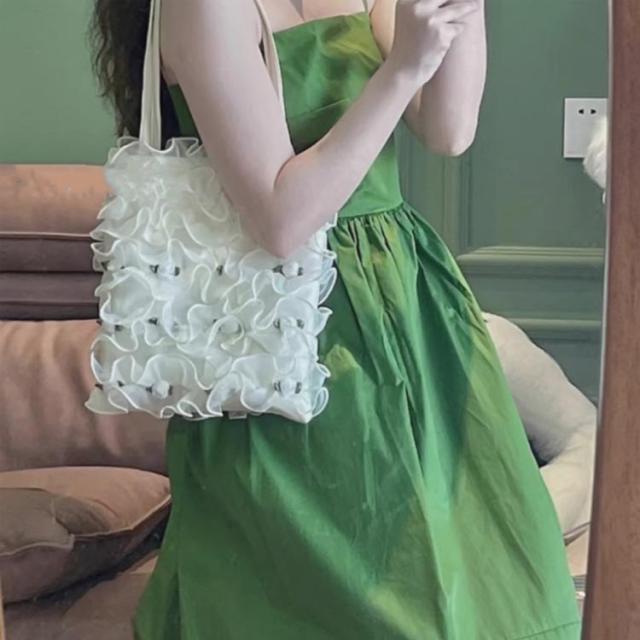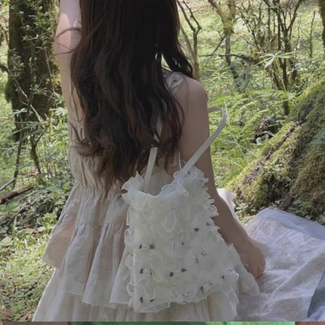 シアーなチュールとフリルがおしゃれを演出するバッグ。