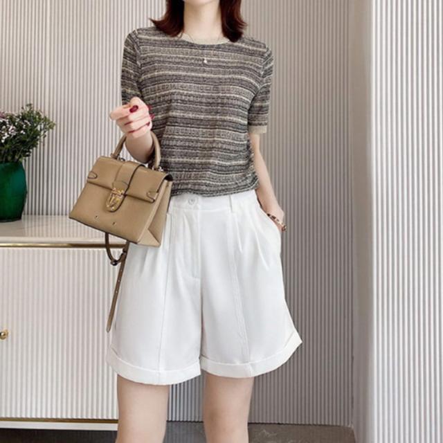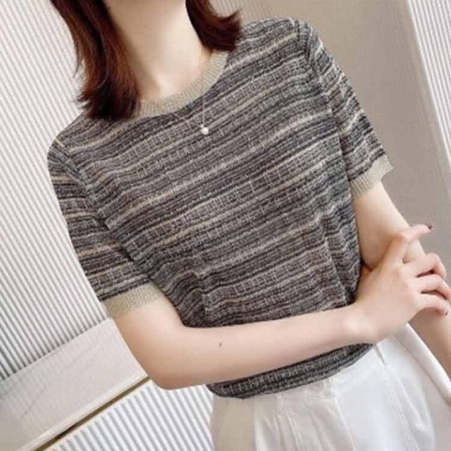 ブラウス シャツ トップス お出かけ 半袖 ツイードデザイン かわいい 大人女性 可愛い おしゃれ エレガント カジュアル ラウンドネック 上品 こなれ感 ガーリー 主役級 トップ シンプル