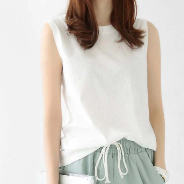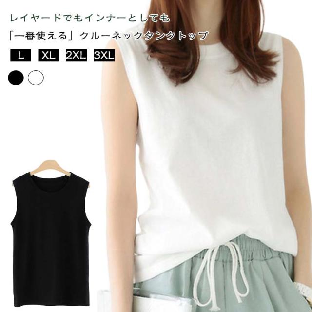ブラ紐見えない おしゃれ ノースリーブ 大きいサイズ 無地 タンクトップ 肌着 シンプル レディース 女性 トップス 春夏 レイヤード 大人 秋 インナー 薄手 クルーネック 重ね着 体型カ ホワイト