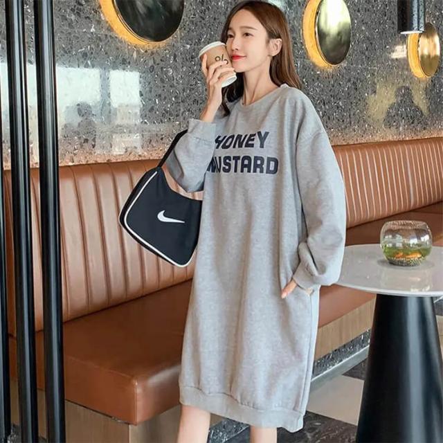 ワンピース レディース ルームウェア かわいい ロングトレーナー プルオーバー パーカー ロング丈 ルームワンピース ポケット付き クルーネック 部屋着 パジャマ 裏起毛 春 秋冬 英字ロゴ