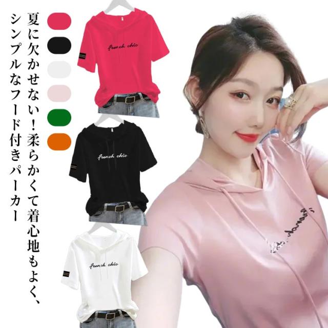 半袖 薄手 プルオーバーパーカー プルオーバー tシャツ パーカー トップス プリント Tシャツ カジュアル 春 夏 フーディー ロゴ テーシャツ フード カットソー おしゃれ
