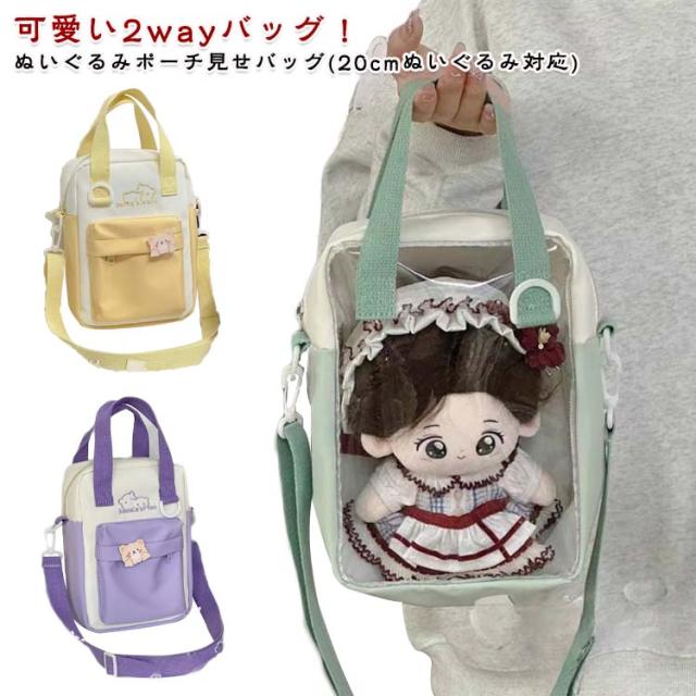 推し活グッズ コンパクト 2way レディース 斜めかけバッグ 推し 可愛い 透明 20cm対応 クリア窓 ぬいポーチ ポーチ クリア ぬいぐるみ収納バッグ ぬいぐるみポーチ ぬいぐるみ 活