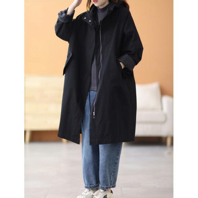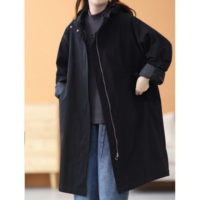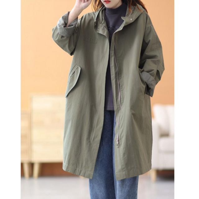 スプリングコート 薄手 トレンチコート アウター ミドル丈 ロングコート ライトアウター 春ジャケット フード付き 春服 レディース マウンテンパーカー ゆったり 体型カバー 春コート