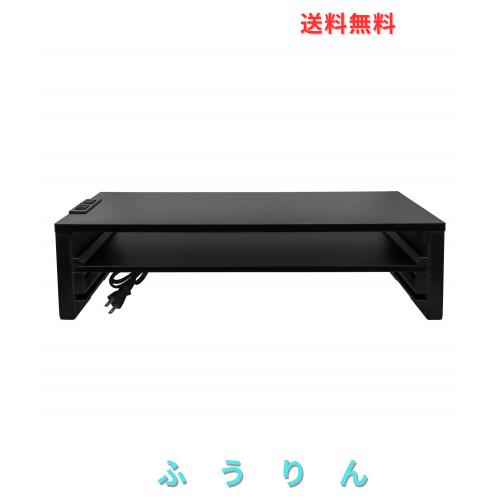 ◆商品名:EAYHM モニター台 二段式 机上台 2口コンセント付き 木製天板54x23.5CM PCキーボード収納ラック パソコン スタンド プリンター台