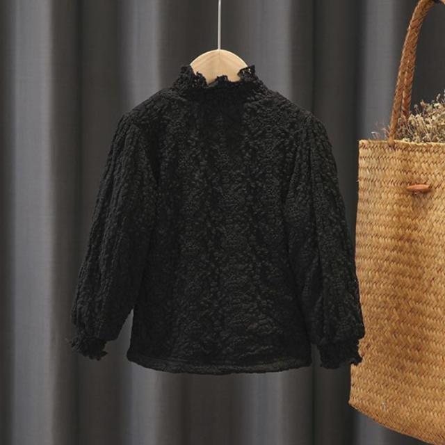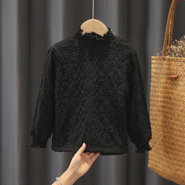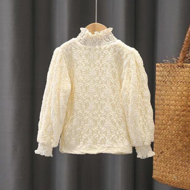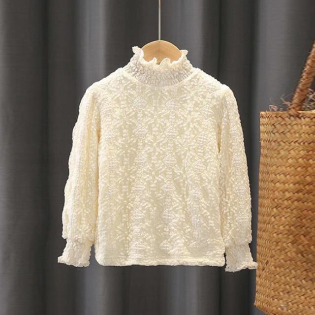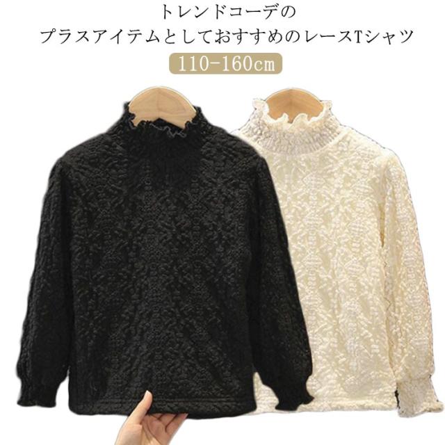 可愛い ジュニア 子供服 重ね着 トップス 1長袖 レースTシャツ フリルネック キッズ 春 薄手 カットソー 裏起毛 インナー 子ども 女の子 きれいめ インナーブラウス ブラ 服