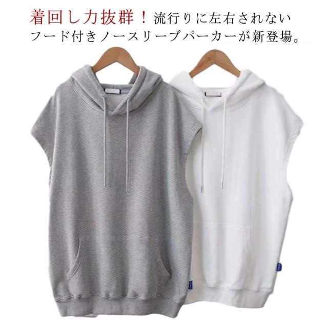 フード付き ノースリーブパーカー ノースリーブ 夏 レディース プルオーバー 秋 カジュアル レイヤード ベスト トップス お洒落 重ね着 ゆったり 薄手 春服 パーカー