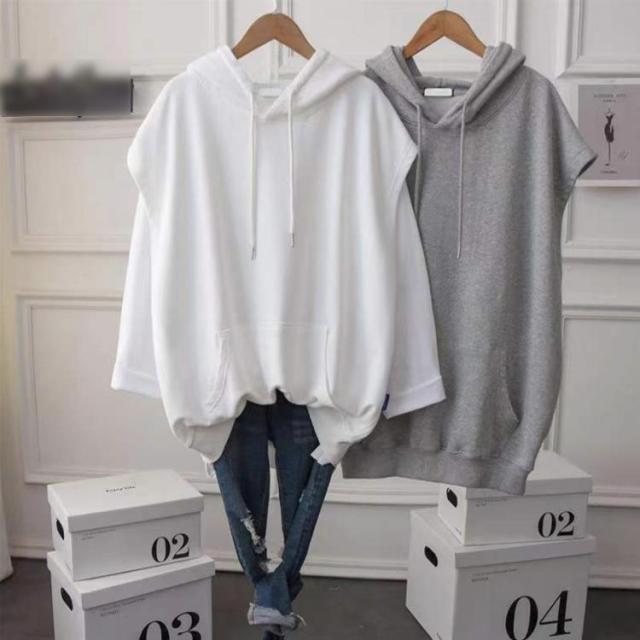 フード付き ノースリーブパーカー ノー レディースファッション お得なセール 白 灰 黒 M L XL 2XL 3XL 4XL