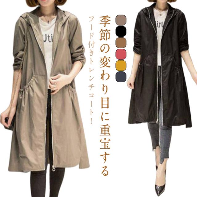 30代 スプリングコート ロング丈 ミセス レディース 春コーデ ジャケット アウター 秋コーデ フード付き 大きいサイズ 50代 40代 トレンチコート きれいめ ロングコート オフ ライトアウター