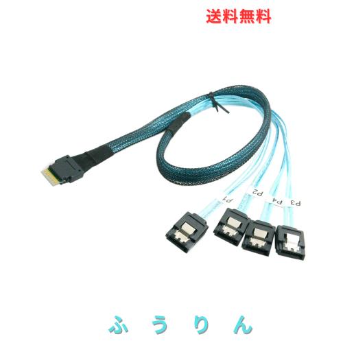 ◆商品名:cablecc スリムライン SAS 4.0 SFF-8654 4i 38ピン ホスト - 4 SATA 7ピン ターゲット ハードディスク ファンアウト RAID ケーブル 50cm