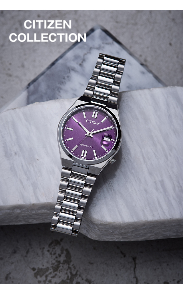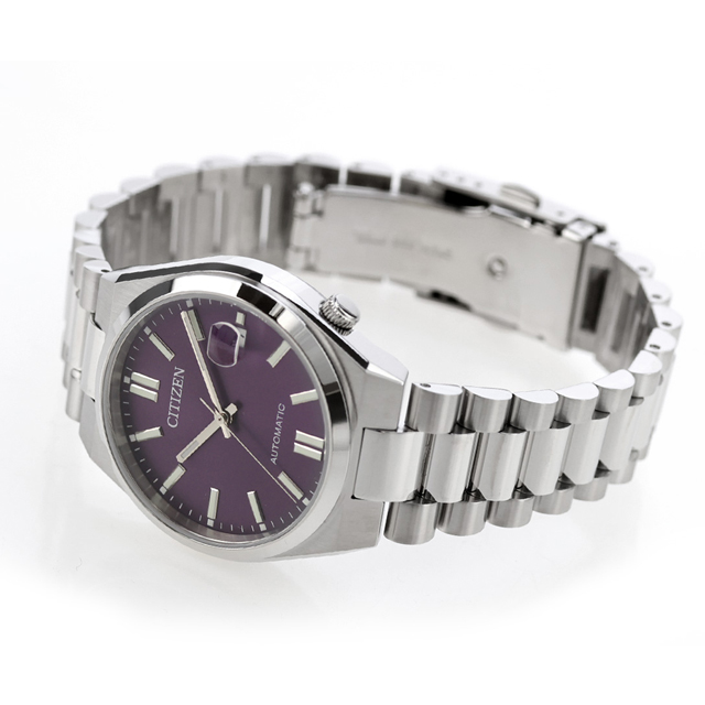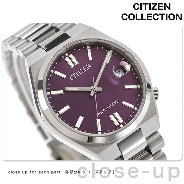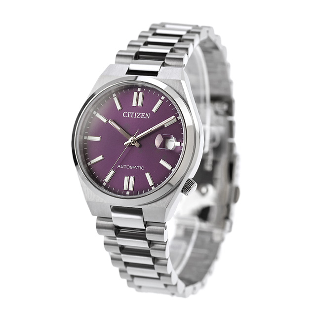 正規品 7年保証キャンペーン 送料無料 シチズン コレクション メンズ レディース 腕時計 NJ0200-50W CITIZEN COLLECTION TSUYOSA アナログ パープル ◆豊富なカラーバリエーションで海外でも人気のTSUYOSAから、やや小ぶりなサイズ感が魅力のケースが登場。女性の腕にもなじみやすいユニセックスモデルです。メタリックな質感の文字板に、シンプルな針とインデックスを組み合わせた3針タイプ。カレンダー部分には視認性を高める拡大鏡レンズを採用しています。個性的なカラーの文字盤を採用。裏ぶたは、メカニカルウオッチならではのシースルーバック。回転する錘(おもり)やメカの動きを楽しむことができます。年代・シーンを問わず人気のあるカラーリングで贈りものとしてもおすすめです。 発売日:2025年8月発売 機械式腕時計