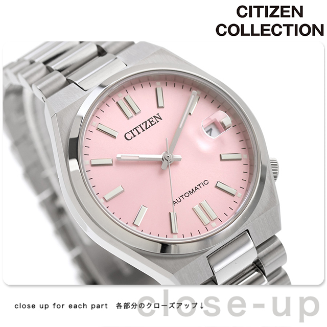 正規品 7年保証キャンペーン 送料無料 シチズン コレクション メンズ レディース 腕時計 NJ0200-50Z CITIZEN COLLECTION TSUYOSA アナログ ピンク ◆豊富なカラーバリエーションで海外でも人気のTSUYOSAから、やや小ぶりなサイズ感が魅力のケースが登場。女性の腕にもなじみやすいユニセックスモデルです。メタリックな質感の文字板に、シンプルな針とインデックスを組み合わせた3針タイプ。カレンダー部分には視認性を高める拡大鏡レンズを採用しています。個性的なカラーの文字盤を採用。裏ぶたは、メカニカルウオッチならではのシースルーバック。回転する錘(おもり)やメカの動きを楽しむことができます。年代・シーンを問わず人気のあるカラーリングで贈りものとしてもおすすめです。 発売日:2025年8月発売 機械式腕時計