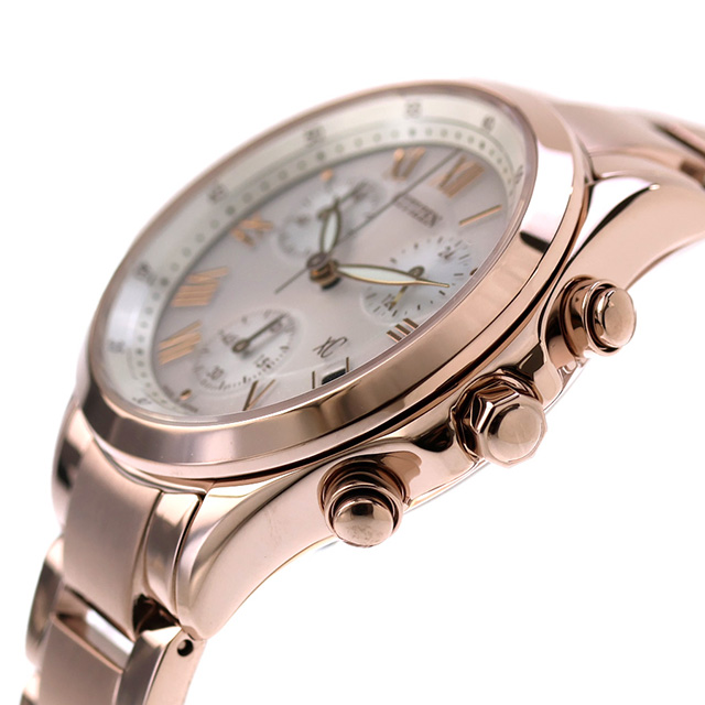 【リップケース付】 シチズン クロスシー basic collection 光発電エコドライブ 腕時計 ブランド レディース クロノグラフ ソーラー CITIZEN xC FB1405-58A アナログ シェル ピンクゴールド 白 日本製 おしゃれ 防水 軽い 華奢 かわいい プレゼント 女性 実用的