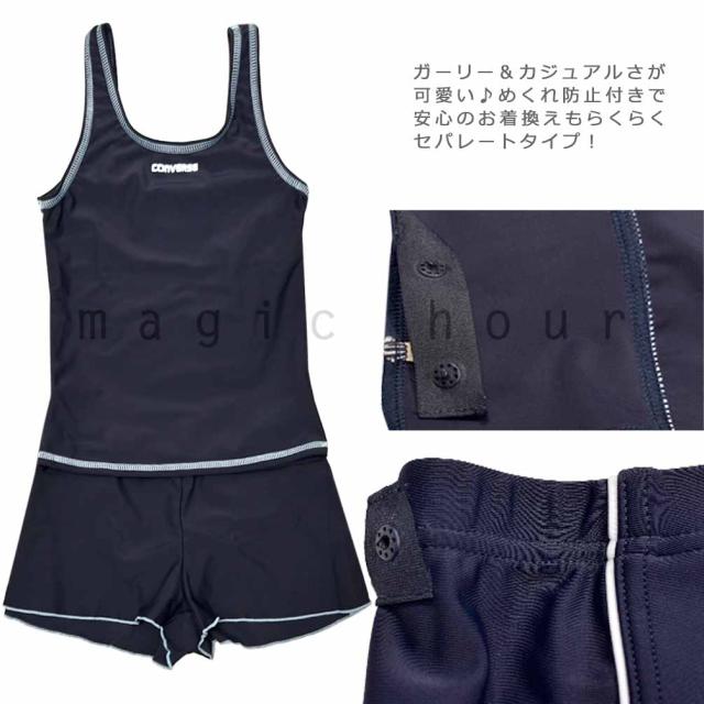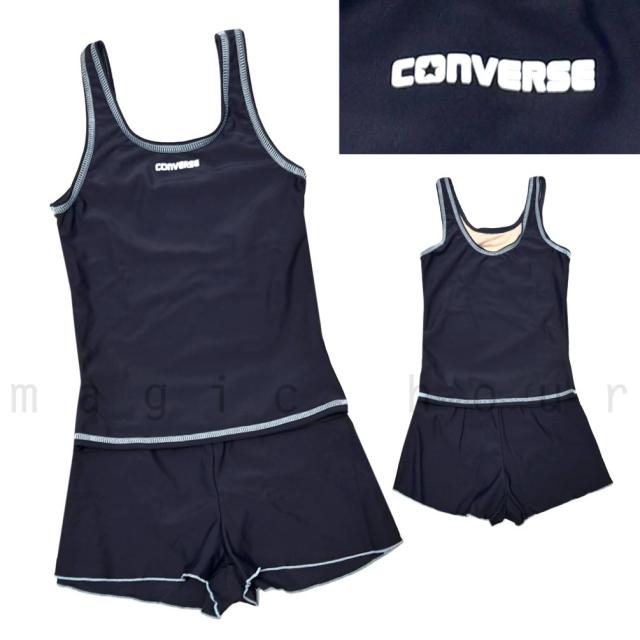 検) CONVERSE コンバース こども 子ども 水泳 スイムウエア UVカット 女の子 ネイビー 女児 小学生 低学年 高学年 セパレート スク水 かわいい 定番 学校指定 学校指定基準 塩素に強い 上下 紫外線 ロゴ ブルー 紺