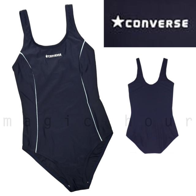 検) CONVERSE コンバース こども 子ども 水泳 スイムウエア UVカット 女の子 ネイビー 女児 小学生 低学年 高学年 ワンピ スク水 かわいい 夏 定番 学校指定 学校指定基準 塩素に強い 上下 紫外線 黒 ロゴ ブルー 紺