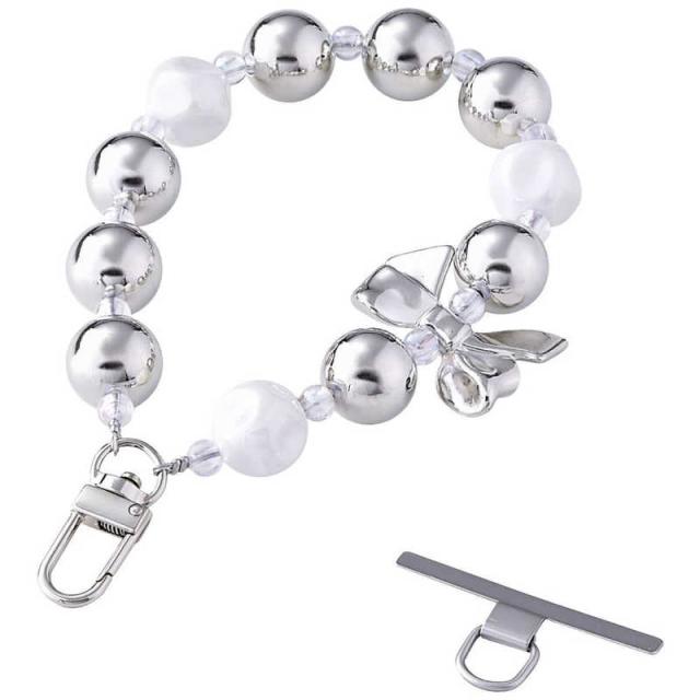 エレコム ELECOM スマホストラップ 大玉ビーズ ハンドストラップ 手首 落下防止 おしゃれ ストラップホルダーシート付き iPhone/Android対応 携帯ストラップ P-STHBESV