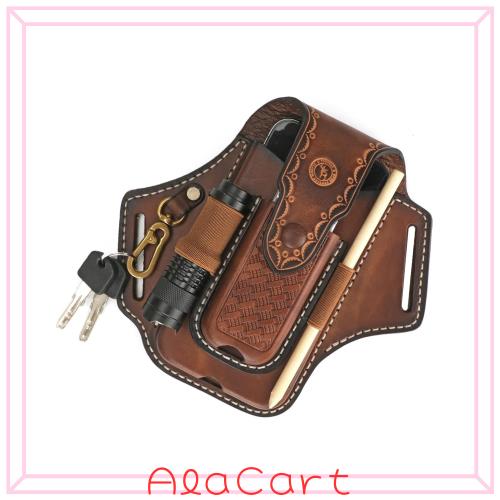 ◆商品名:TOURBON スマホポーチ レザー スマホホルダー ベルト通し ツールポーチ 多機能ペンチ ペン 懐中電灯 鍵 収納