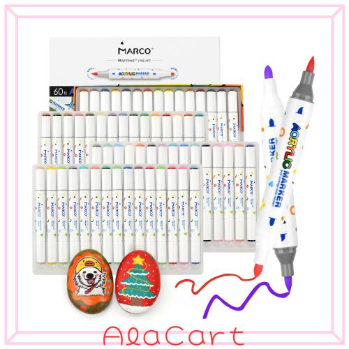 Marco 60色カラーマーカー,アクリル絵の具 綿芯構造 硬軟両頭 6/10/12mm 速乾・防水・耐光・不透過紙 acrylic marker 落書き 手描き 塗