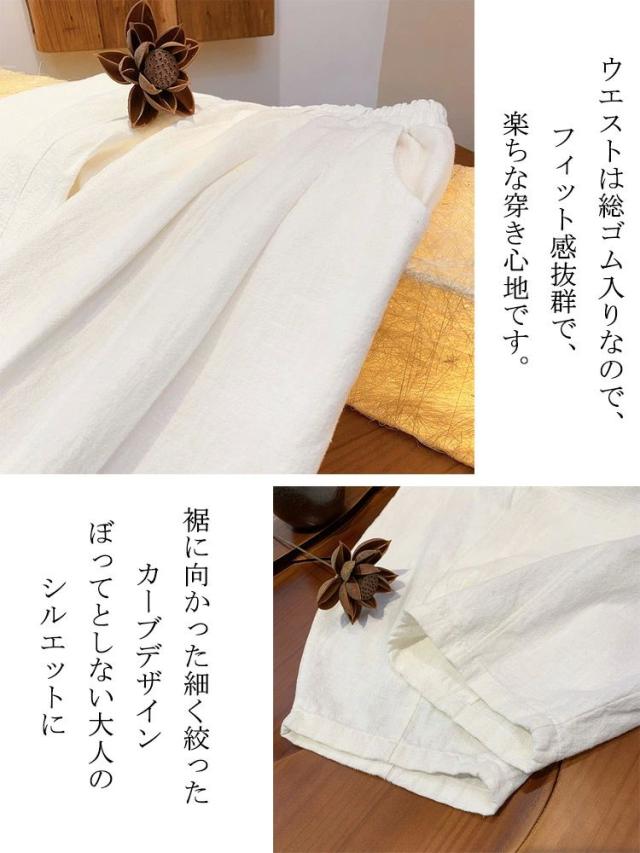 カーブパンツ リネン ワイドパンツ 夏 ボトムス パンツ 続々登場 ネイビー カーキグリーン ホワイト ブルー アイボリー
