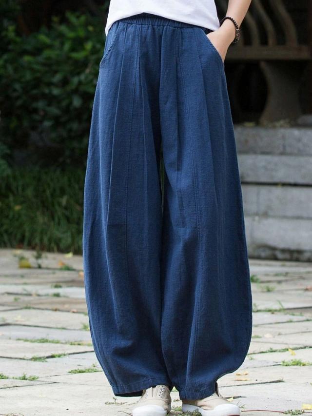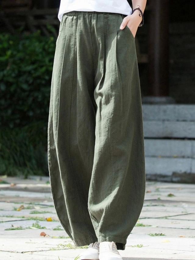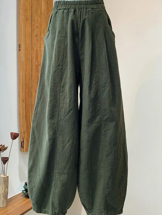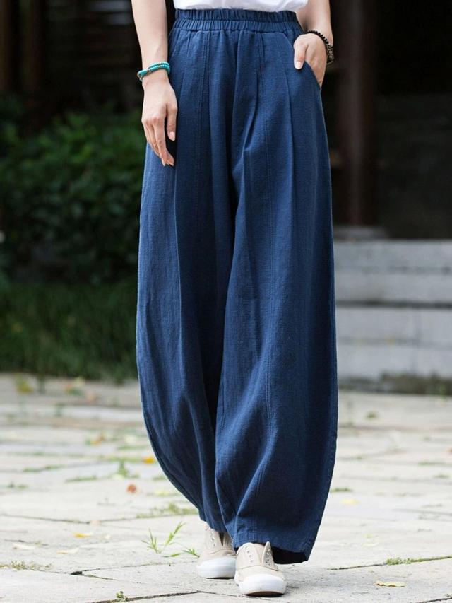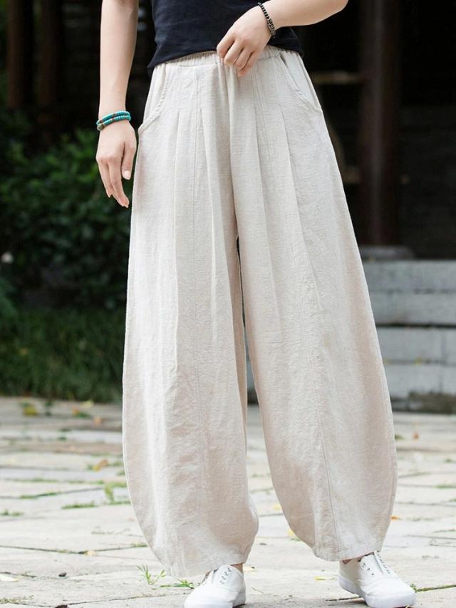 カーブパンツ リネン ワイドパンツ 夏 レディース コクーンパンツ バルーンパンツ カジュアル コットン ワイド 春夏 ロング パンツ ボトムス ズボン 長ズボン ロングパンツ タック ロング丈 ポケット付き ハイウエスト ウエストゴム 大きいサイズ 体型カバー 着痩せ シンプル