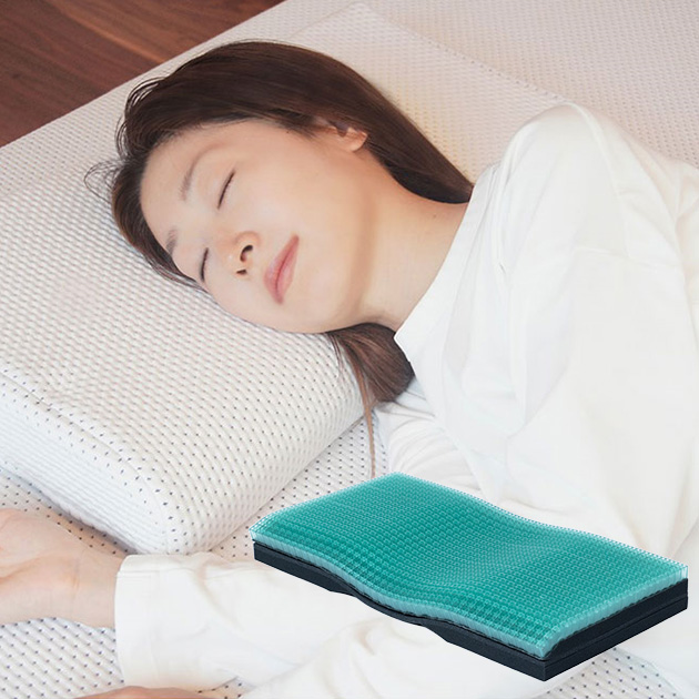 ジェルトロンとウレタンを組み合わせ、頚椎から頭部への負担を軽減した低めのダブルジェル構造まくら。お好みの高さに調整可能です。