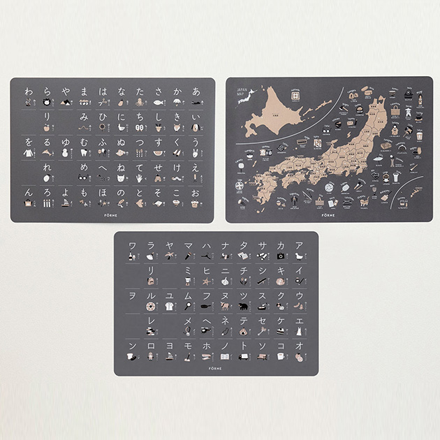 FORNE フォルネ 知育ポスター 3枚セットA 知育玩具 小学生 おしゃれ お風呂 防水 ひらがな カタカナ