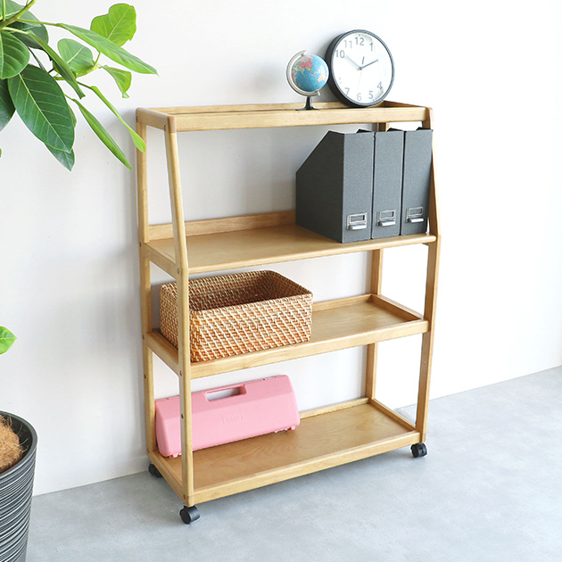 E-Toko いいとこ Wide Rack サイドラック キャスター付き 収納棚 学習デスク 学習机 天然木製 ナチュラル シンプル リビング学習 子供部屋