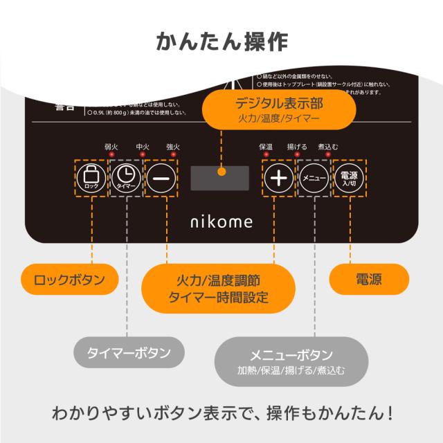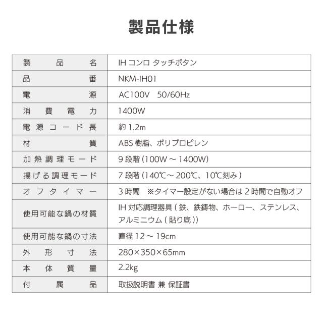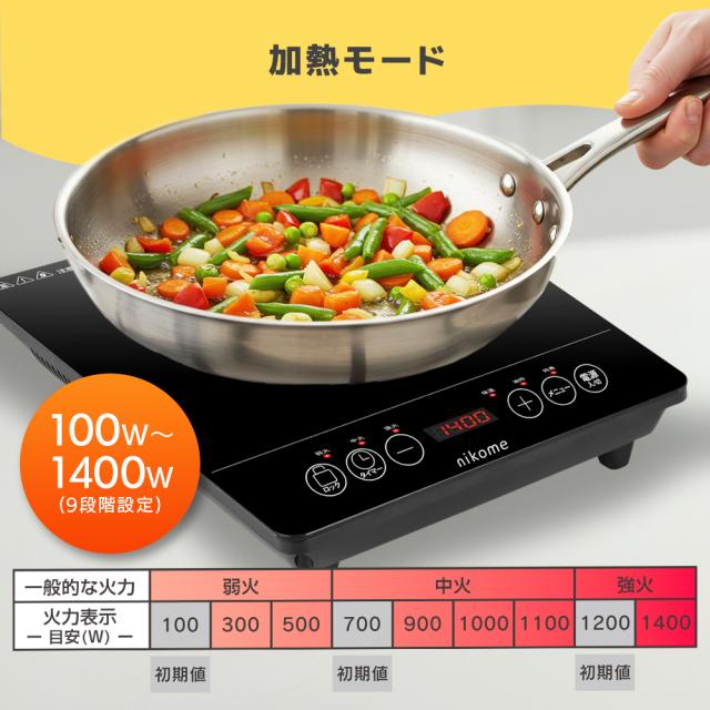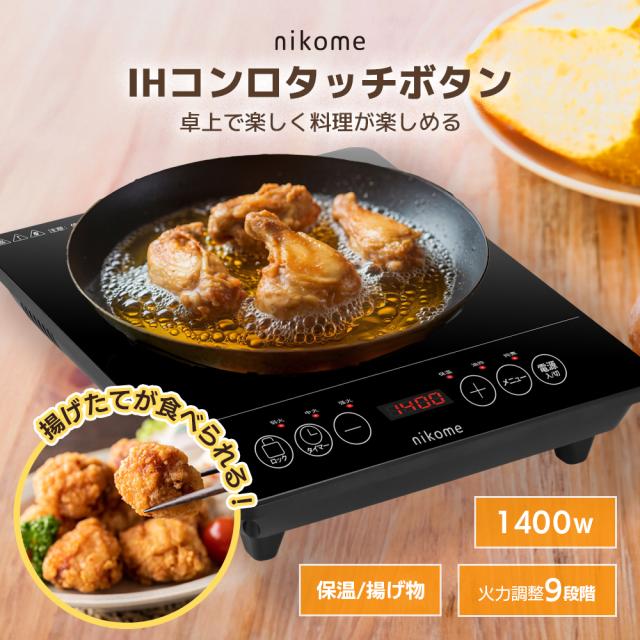 IHクッキングヒーター 卓上 1口 1400W 100V nikome IHコンロタッチボタン NKM-IH01 IHコンロ 卓上IHコンロ IH調理器 IH調理機 1口IH 揚げ物 保温コンパクト 小型 一人暮らし かんたん 安全 1人暮らし 新生活 ニコメ
