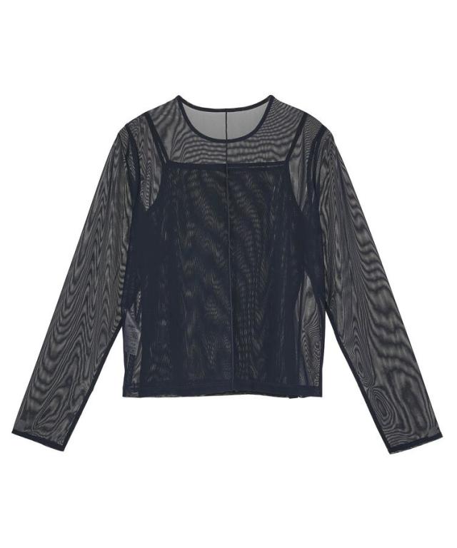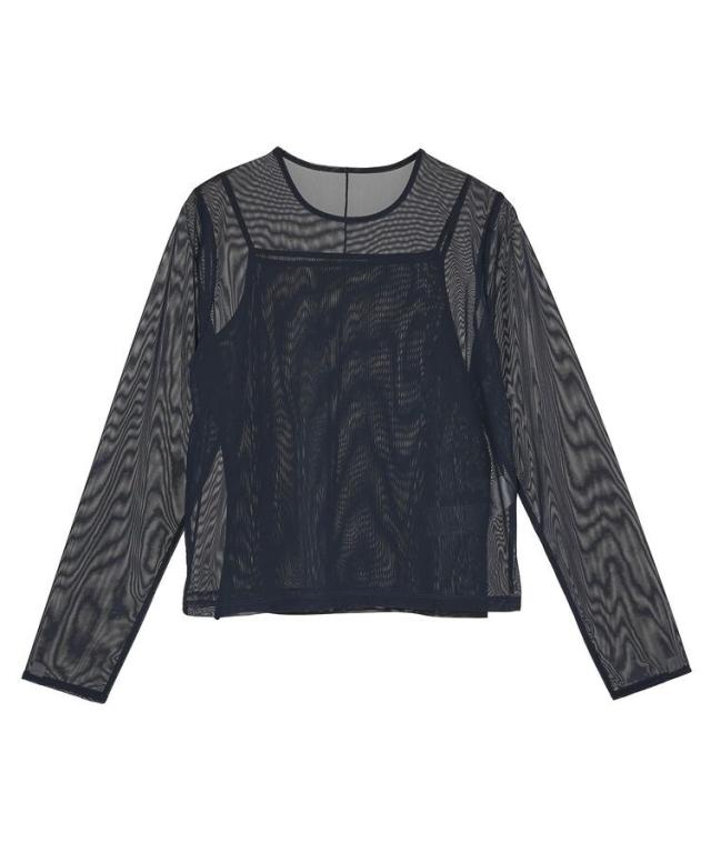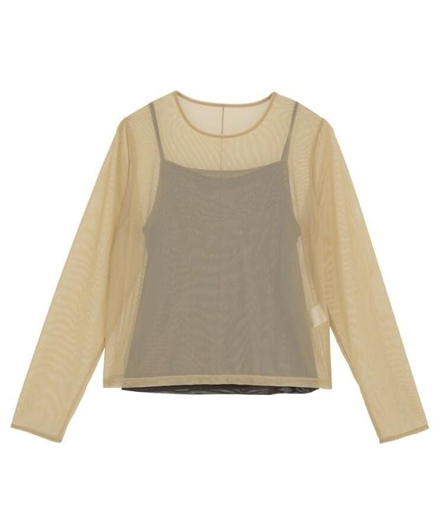 トレンドのチュール素材で仕立てたトップスとキャミソールのお得なセットアイテム。落ち着いたカラーリングとシンプルなシルエットで派手になりすぎず、こなれた雰囲気を演出します。セットではもちろん、お手持ちのTシャツとのレイヤードも。シンプルなボトムに合わせるだけで旬のコーディネートが完成するおすすめのアイテムです。透け感[あり]