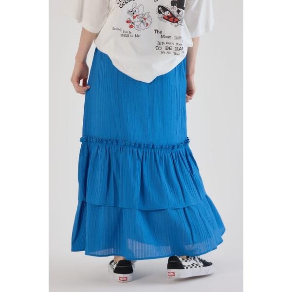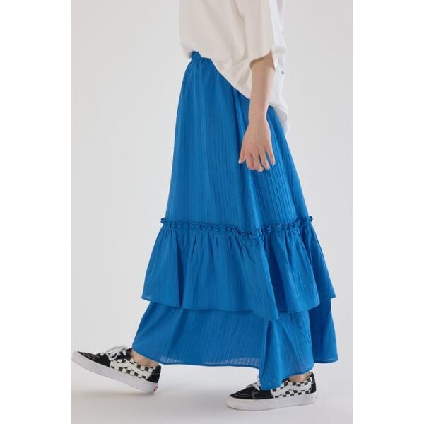 ■ポイント裾のフリルデザインが動きのある表情をプラスし、女性らしい印象に。■ディテール裾にフリルをあしらったマキシスカート。ウエスト部分はゴム仕様なので着脱もしやすいです。■スタイリング着回しやすいデザインなのでガーリーコーディネートはもちろん、カジュアル・きれいめ・シンプル・古着など色々なテイストのアイテムと合わせられます。■生地タック織りでストライプ調に仕上げたT/R素材を使用。O/WHTは透け防止裏地を使用。■透け感:ややあり■裏 地:あり■伸縮性:なし■光沢感:ややあり[注意事項]※画像の商品はサンプルです。実際の商品と仕様、加工が若干異なる場合があります。※画像の商品は光の照射や角度、お使いのモニター環境により、実物と色味が異なる場合がございます。※着用、お取り扱いの際は、アテンションタグをご確認ください。