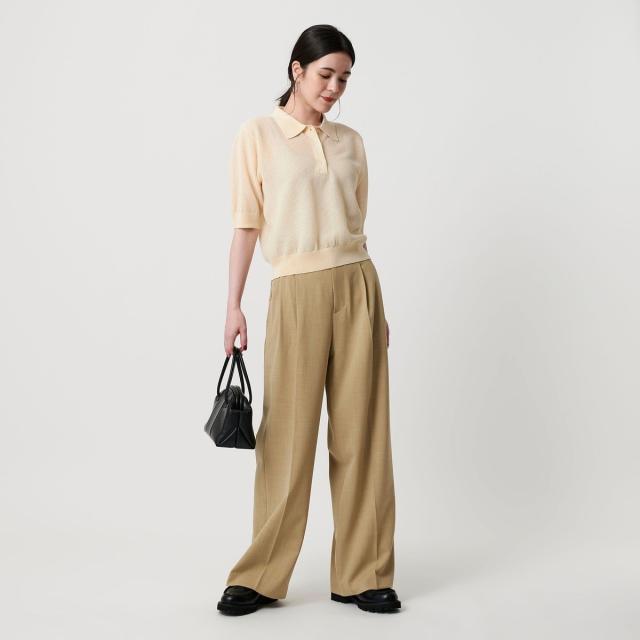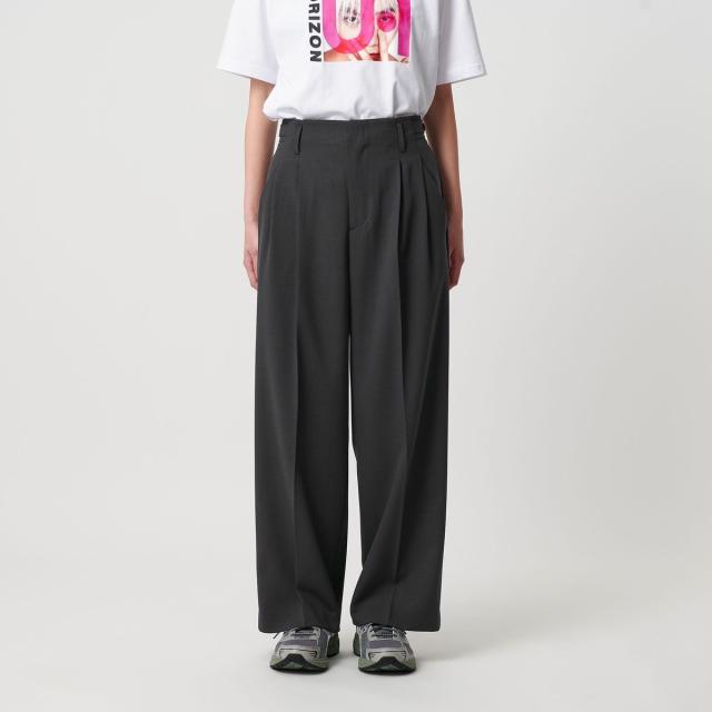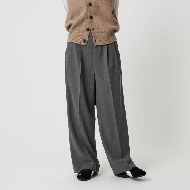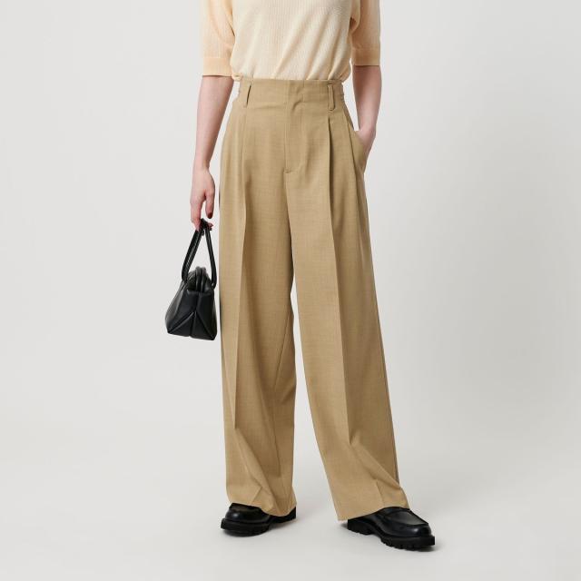 ポリエステルブレンド 2タック タブワイドパンツ