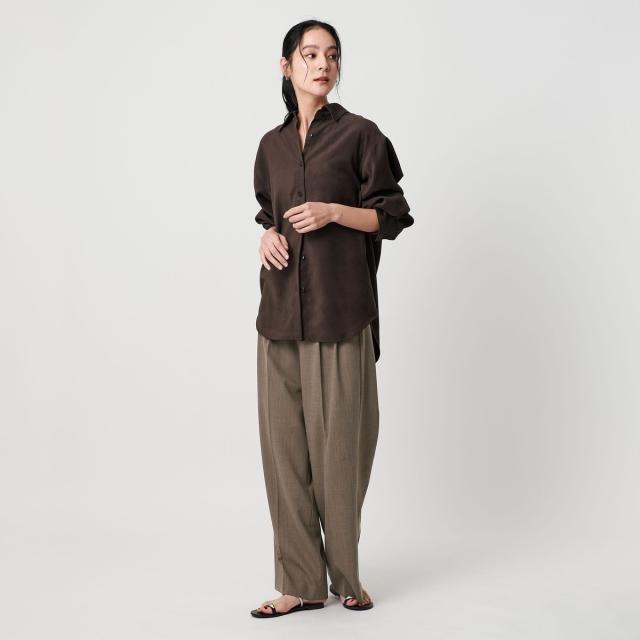 裾幅はゆったりとしながらも腰周りはボリュームが出過ぎないワイドストレートのシルエット。