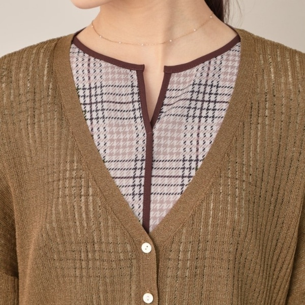 ほんのりラメ感のある落ち着いたカラー展開のVネックカーディガン。