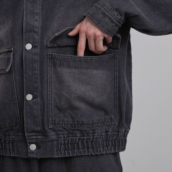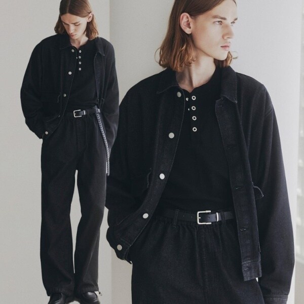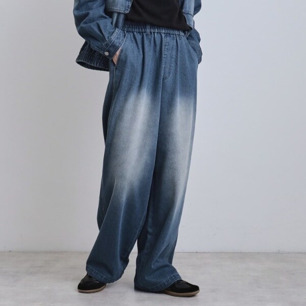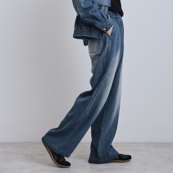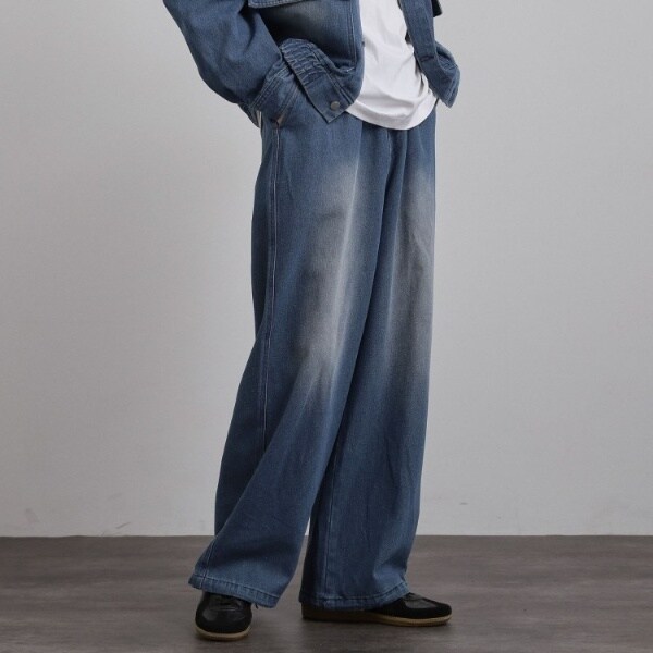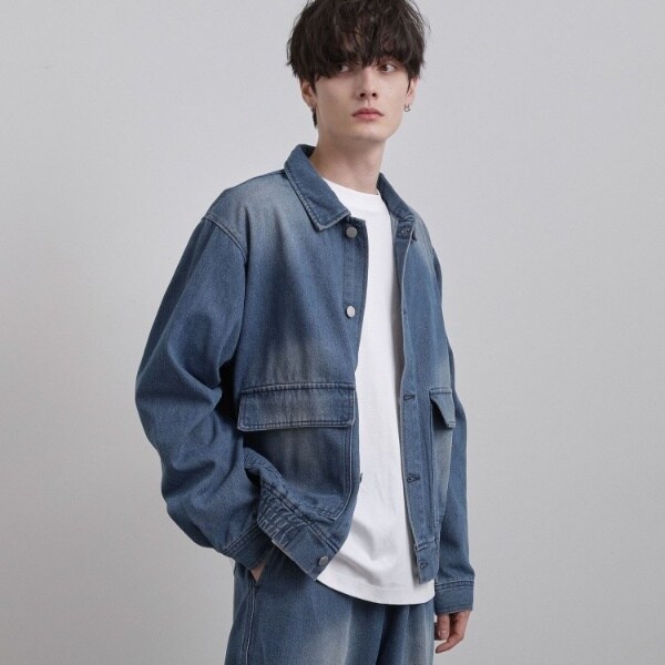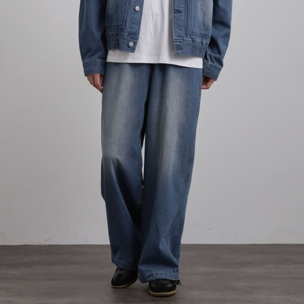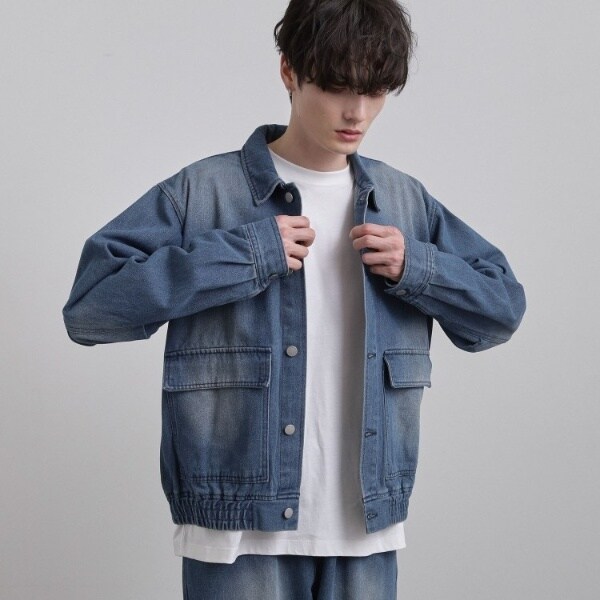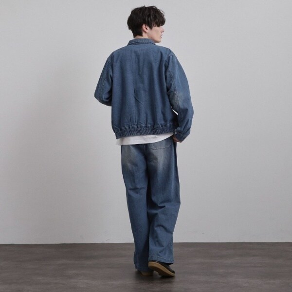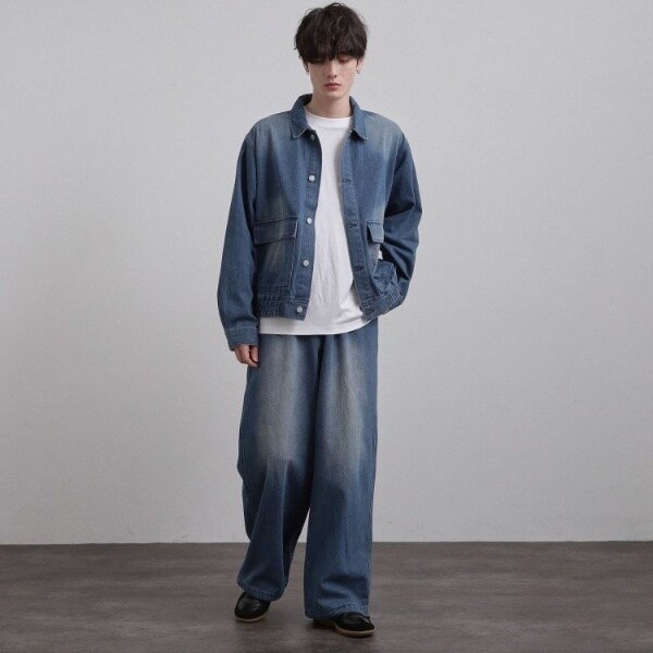 【上下2点セット】デニムブルゾン+ワイドデニムパンツ