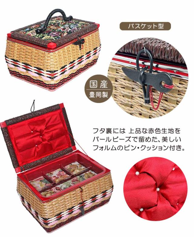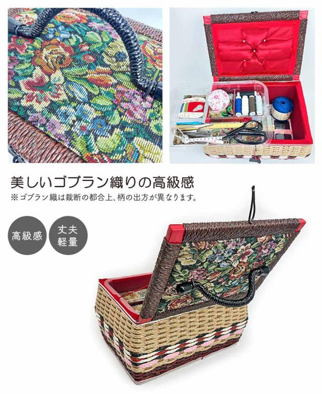 裁縫箱 ソーイングボックス 針箱 手芸箱 大きめ 2段 手芸ボックス sb-st-gmss 国産 豊岡製 バスケット型 お裁縫箱 ゴブラン織り おしゃれ アンティーク レトロ 手芸 裁縫道具 ソーイングバスケット トレイ付き お針箱 結婚祝い 出産祝い 敬老の日 プレゼント お誕生日