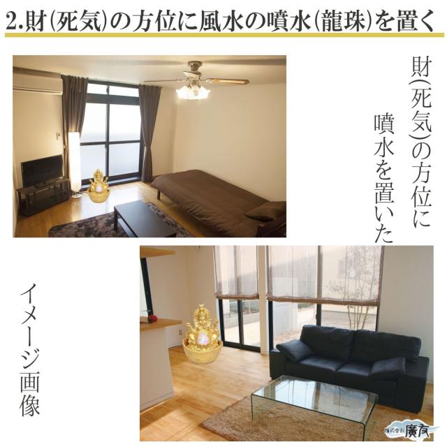 ・玄関が東向き—家の中心からみた「北」か「東南」か「西」に『龍珠(噴水)』を置く。
