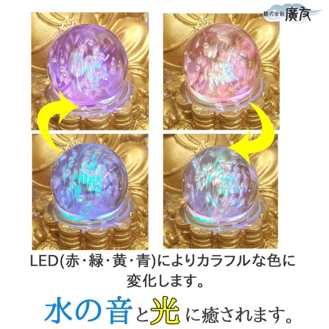 構造上、水を循環させ、龍珠が回転する仕組みの為、周りに多少水が飛び散る場合がございます。 予めご了承ください。