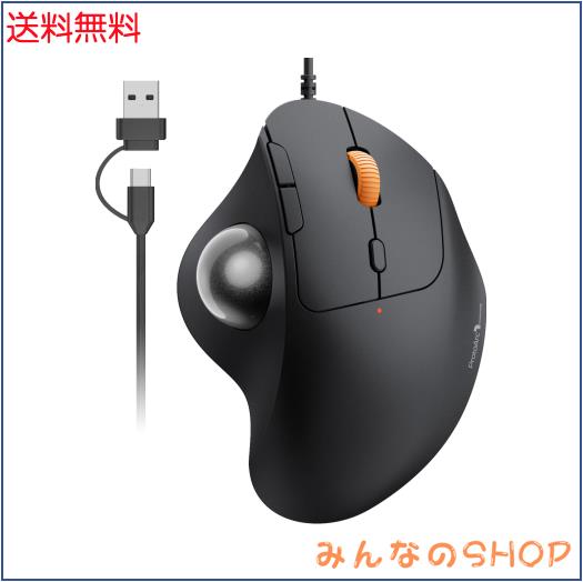 ProtoArc トラックボールマウス 有線 USB-C/USB-A両対応 4段階DPI調節可能 親指操作 マウス トラックボール 静音タイプ 6ボタン 進む/戻