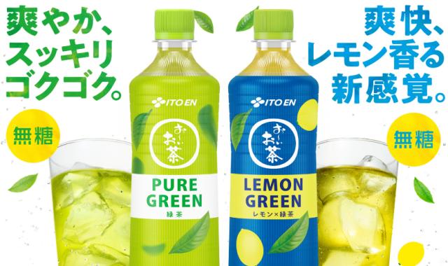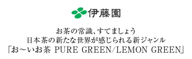 ![]() | お茶の伝統を引き継ぎつつグローバルで日本の茶文化を伝播させる新シリーズとして、伊藤園は「お〜いお茶 PURE GREEN」「お〜いお茶 LEMON GREEN」を発売。 「お〜いお茶 PURE GREEN」は飲んだ瞬間にはっとする香りとまろやかな口あたり、「お〜いお茶 LEMON GREEN」はレモンの爽やかな香りとお茶のあまみが楽しめます。 |