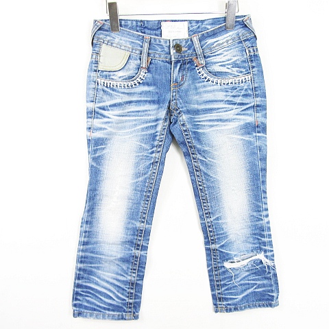 【中古】ロリータデニム LOLITA DENIM デニム パンツ ジーンズ クロップド丈 XS ライトブルー ダメージ加工