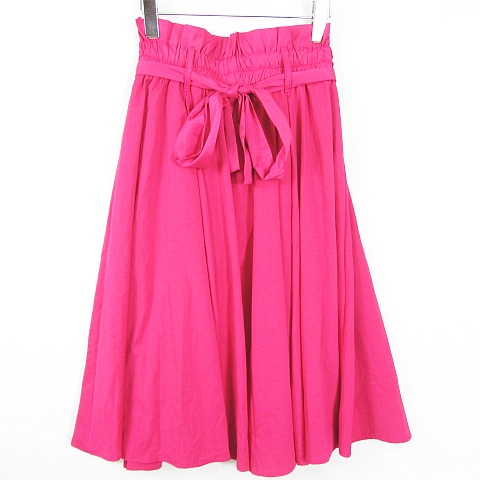 【中古】jique フレア スカート ロング丈 ベルト付き ストレッチ M ビビッドピンク kz12316 レディース