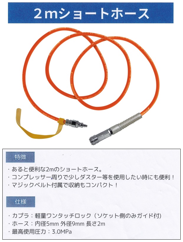 ・あると便利な2mのショートホース。